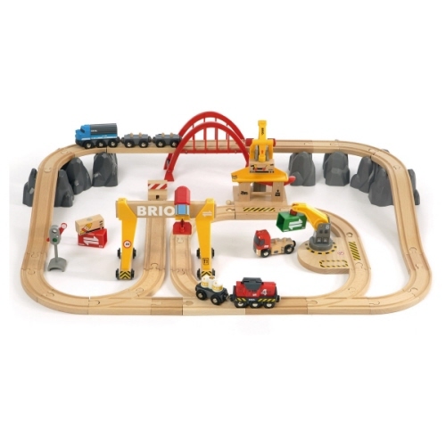 Brio Bahn Set Deluxe Frachten54 Teile, Holz, Kunststoff,810x560 mm, Batterielok Mit Scheinwerfer und beweglichen Kränen.ab 3 Jahren, Batterien 1xAA exklusiveBrio