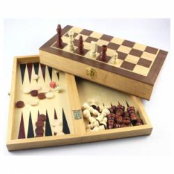 Diese Holzkassette ist vielseitig mit Schach, Backgammon und Dame 3 Spiele in 1.