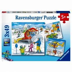 Ravensburger Puzzle Auf der Skipiste mit 3x49 Teilen.